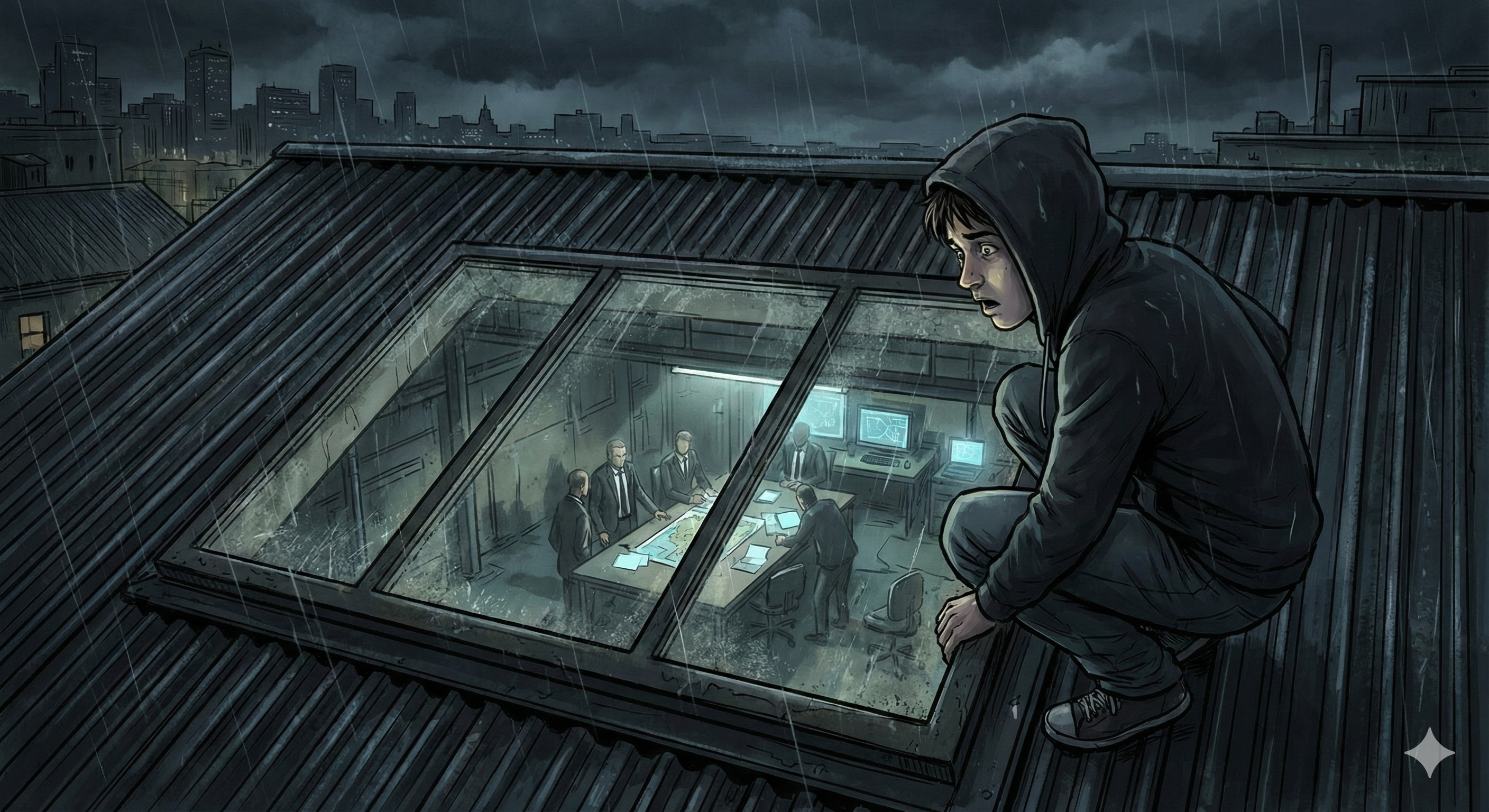 J’ai couru. J’ai sauté, agrippé la gouttière froide et humide. J’ai tiré sur mes bras. L’entraînement payait. En deux secondes, j’étais sur le toit, le cœur battant la chamade. Je n’étais plus un simple lycéen. J’étais un intrus dans un monde d’adultes dangereux.