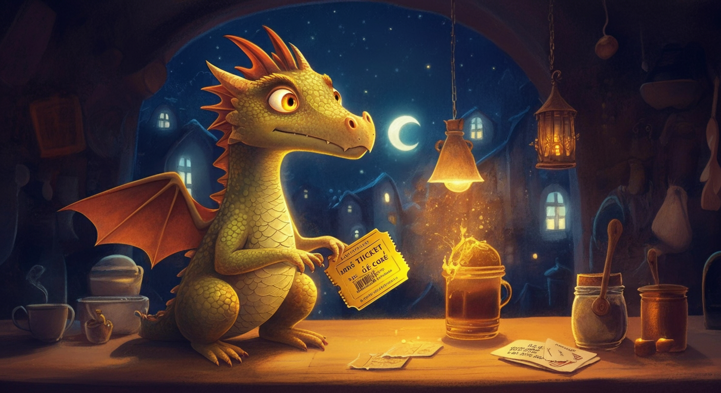 Croquette sourit de toutes ses dents. Cette nuit-là, et toutes les nuits qui suivirent, la cuisine ne fut plus un royaume silencieux. C’était devenu un merveilleux terrain de jeu. Ignis et Croquette utilisaient le ticket de bus doré comme une luge scintillante pour dévaler le paquet de céréales, ou comme un tapis volant magique qu’Ignis soulevait de quelques centimètres dans les airs. Le plus beau des trésors, comprit enfin le petit dragon, n’était pas un objet brillant, mais un ami avec qui le partager.